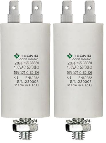 TECNID MG8500 Permanent pour Moteurs 50µF 450V. Écrou M8 Puissance. Le condensateur de démarrage est dans Un boîtier cylindrique en polypropylène. Connexion électrique Via 4 bornes, Blanc (Lot de 2)