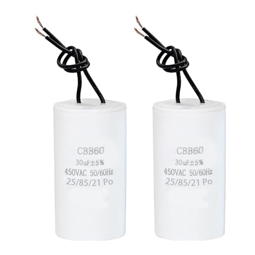 2 CBB60 450V 50/60Hz Condensateur de Démarrage, Condensateur de Moteur avec Fils, pour Pompe à Eau Piscine Compresseur Climatiseur Lave-Linge Générateur Machine (30μF)