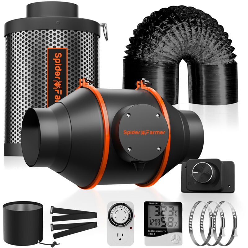 Spider Farmer – Ventilateur de conduit en ligne 4 pouces – Extraction avec contrôleur de vitesse – Kit d'accessoire pour VMC – Pour espaces confinés