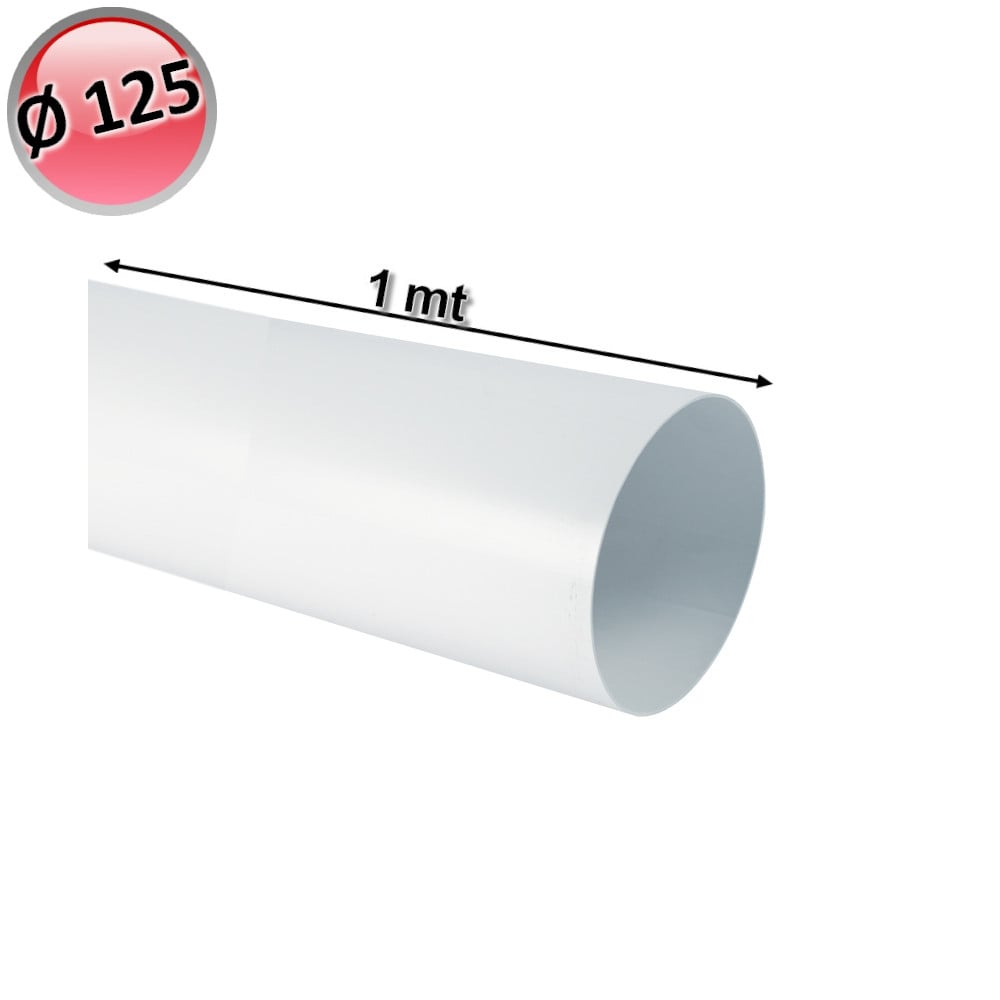 Tube plastique conduit Ø 125mm, 1 mètre longueur pour VMC hotte cuisine