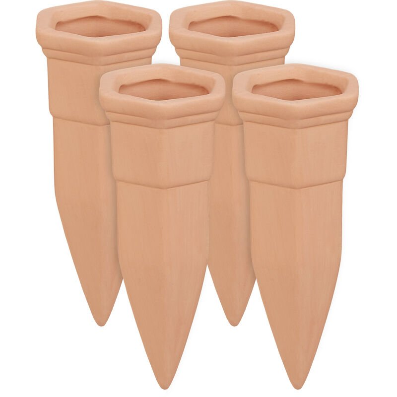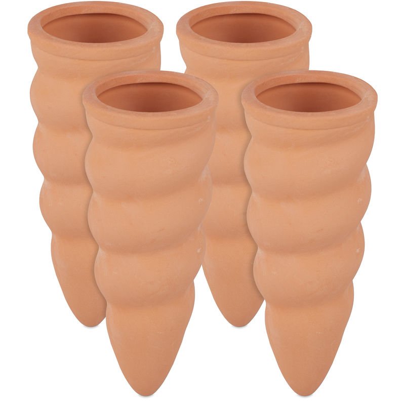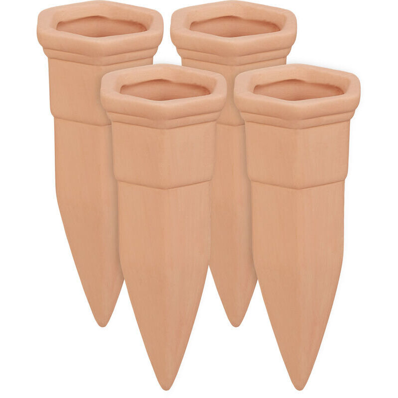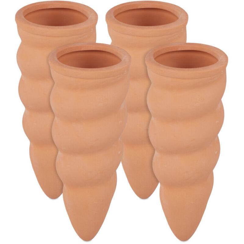 relaxdays Cône d’arrosage, Lot de 4, en céramique, pour Bouteilles d’1,5 l, HLP: 14x4,5x4 cm, Terre Cuite