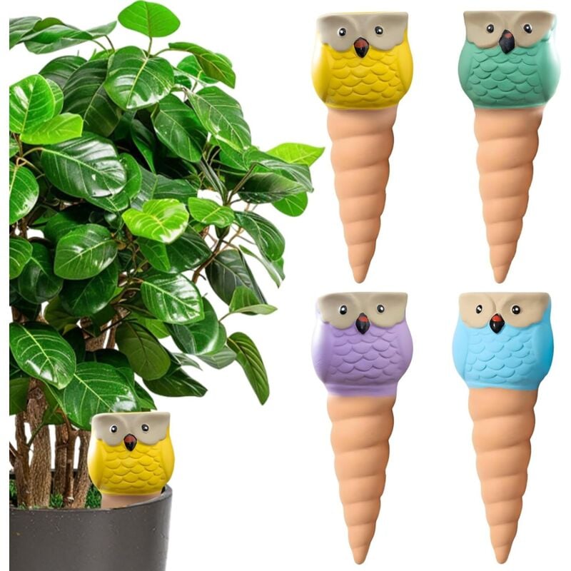 Cône en Argile Goutte à Goutte, Ollas Terre Cuite à Planter 4Pcs, Hiboux Arrosoir Plante Interieur, Arrosage Goutte Automatique pour Plante, Globes