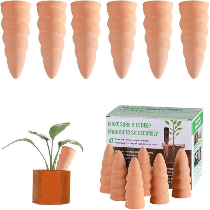 Cône en argile d’arrosage, lot de 12, accessoire d’arrosage, Bouteilles d’1L en plastique ou vin, terre cuite