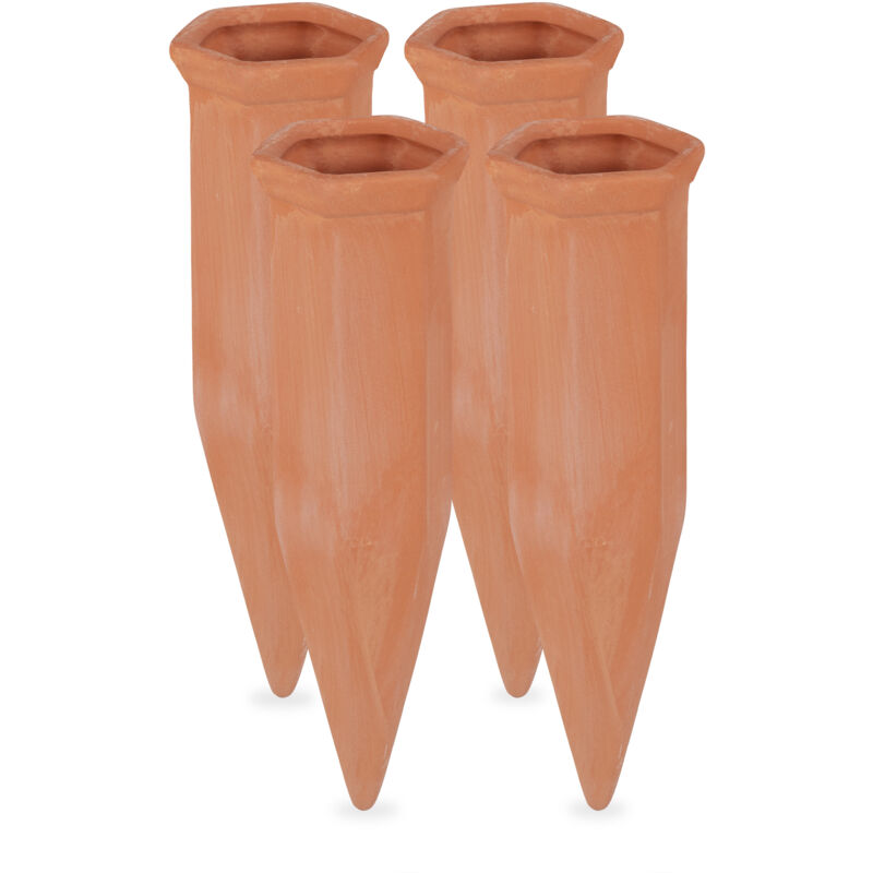 Cône d'arrosage, set de 4, goutte à goutte, plantes d'intérieurs et jardinières, pic d'irrigation, terre cuite - Relaxdays