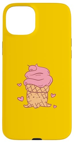 Joli Personnage de cône de Glace avec cœurs Roses Kawaii Coque pour iPhone 15 Plus
