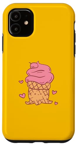 Joli Personnage de cône de Glace avec cœurs Roses Kawaii Coque pour iPhone 11