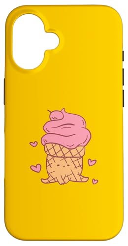 Joli Personnage de cône de Glace avec cœurs Roses Kawaii Coque pour iPhone 16
