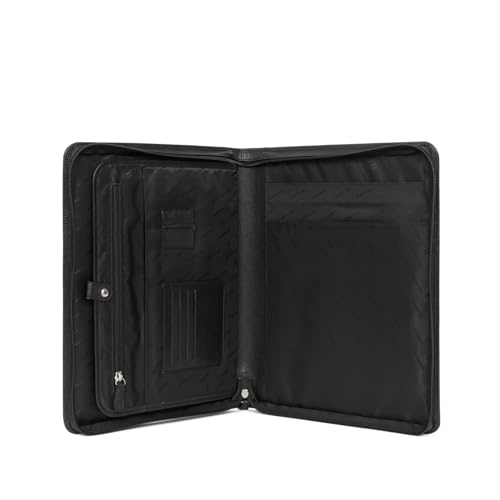 STILORD 'Marek' Conferencier A4 Cuir Zippé Porte Document Cuir Véritable Vintage Portfolio Professionnel Homme et Femme avec Compartiment Tablette 13-13,6 Pouces, Couleur:Noir