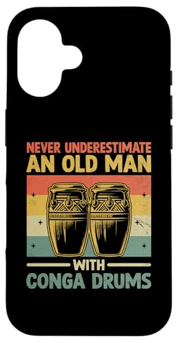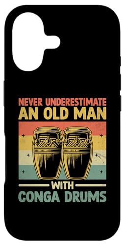 Ne sous-Estimez jamais Un Vieil Homme avec des Congas Drums Congas Coque pour iPhone 16 Plus