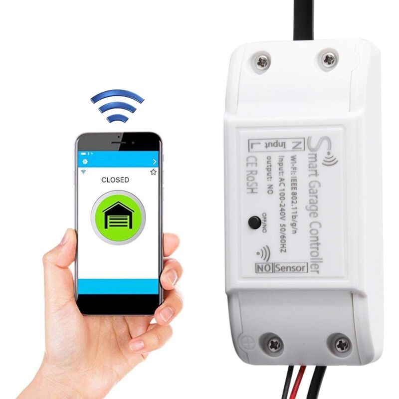 Ouvre-Porte de Garage Connecté WiFi, Interrupteur de Porte Intelligent, Compatible avec Google Home Alexa, Commutateur Contrôlé à Distance, Kits