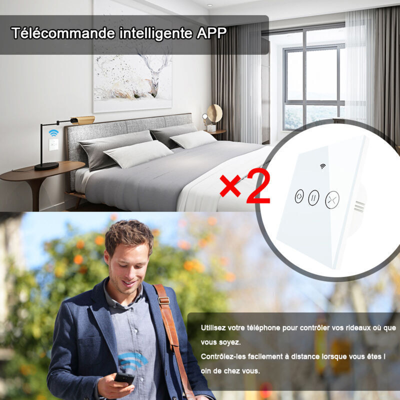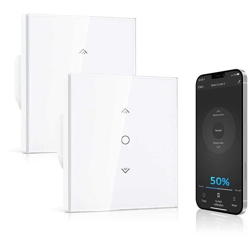 2x Interrupteur Volet Roulant Connecté, Ouverture Réglable, Commutateur Rideau Stores WiFi, Compatible avec Alexa Google Home pour Commande Vocale,