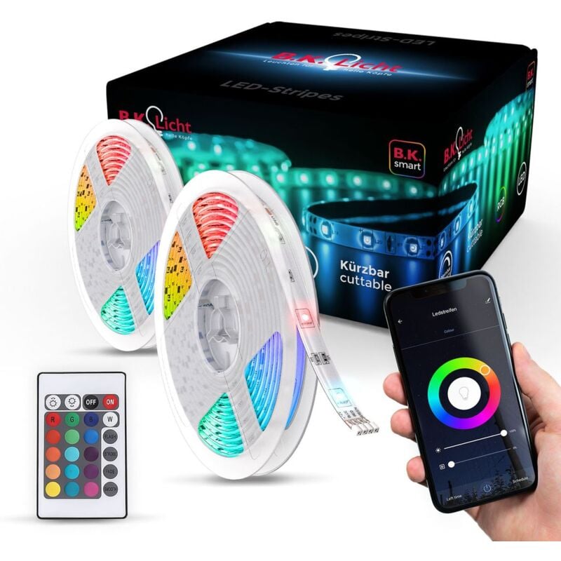 B.k.licht - Ruban led connecté noir dimmable 4m Smart led Stripe compatible avec Amazon Alexa Echo Dot & Google Home avec télécommande 230V