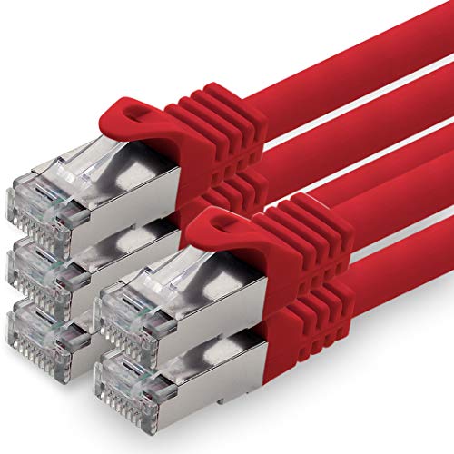 1,0 m - rouge - lot de 5 câbles réseau CAT.7 câble patch SFTP PIMF LSZH câble Gigabit Lan 10Gb s câble brut cat7 avec connecteur RJ45 Cat6a compatible avec CAT5 CAT6 cat7 cat8