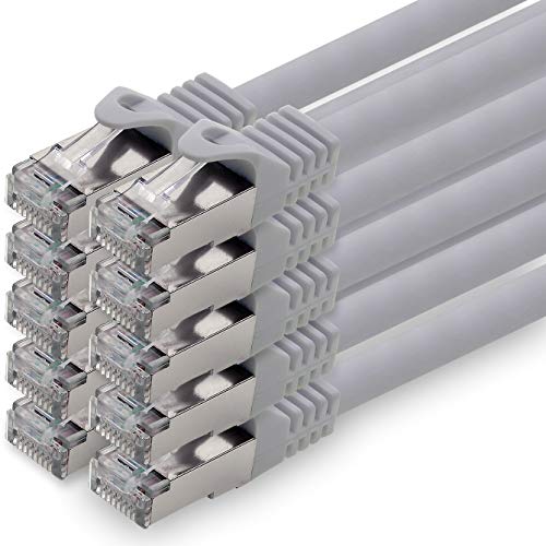1,0 m - gris - lot de 10 câbles réseau CAT.7 câble patch SFTP PIMF LSZH câble Gigabit Lan 10Gb s câble brut cat7 avec connecteur RJ45 Cat6a compatible avec CAT5 CAT6 cat7 cat8