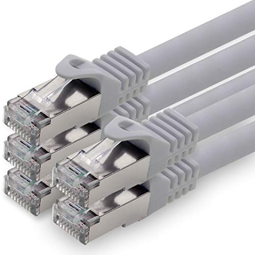 1,0 m - gris - paquet de 5 câbles réseau CAT.7 câble patch SFTP PIMF LSZH câble Gigabit Lan câble brut cat7 10 Gb avec connecteur RJ45 Cat6a compatible avec CAT5 CAT6 cat7 cat8