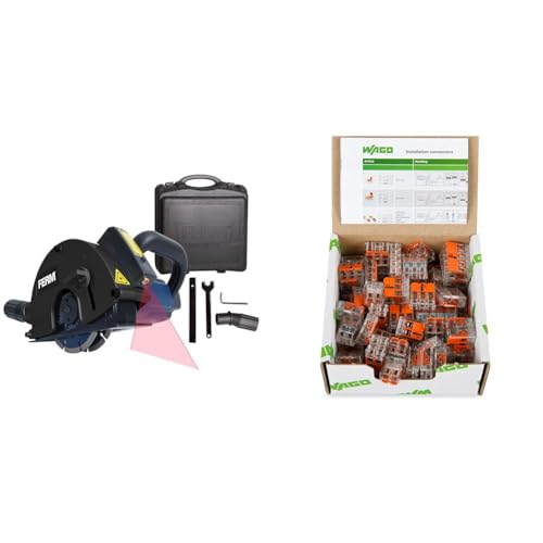 FERM Rainureuse 1700W 125mm - Laser - Incl. 2 lames diamant et adaptateur d'aspirateur & WAGO 221 Lot de 75 connecteurs de câble dans une boîte refermable avec levier 221-412, 221-413, 221-415