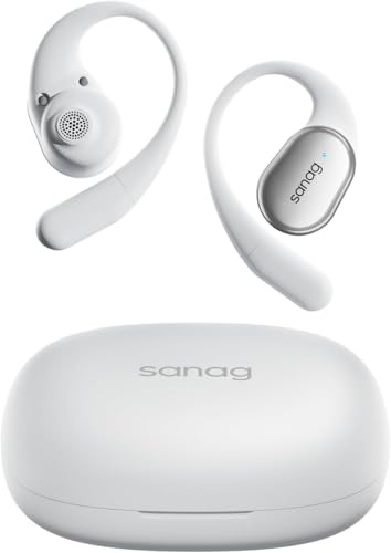 SANAG C16S Casque Bluetooth Sport, Écouteurs Bluetooth 5.3, 500mAh 56Hrs Ecouteur sans Fil avec 3D HiFi Stéréo,IPX4, Connexion Multipoint Adaptés au Travail, au Sport, aux Jeux d'exercice-Blanc
