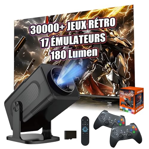 HCS350 Pro+ Projecteur Portable sans Fil avec WiFi & Bluetooth, Console avec 30000+ Jeux 17 Émulateur, 180 Lumen, 1080P, Projetor de Films Android 16 pour Usage en Plein Air, avec Télécommande Vocale