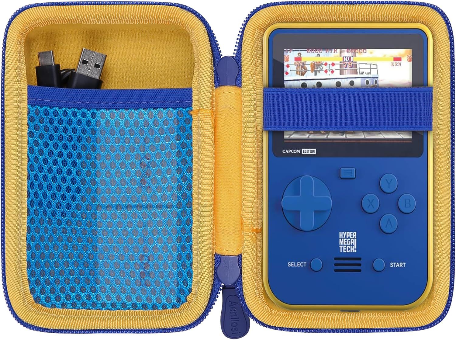 Hard Carrying Case Compatible With Hyper Mega Tech Taito/Capom Super Pocket Portable Console,Mesh Pouch For Usb Cable And Evercade Cartridge (Case Only),Yellow,Bag Hanger