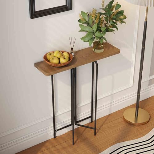 Table d'appoint avec pieds en métal, console moderne pour entrée, design en bois étroit, parfaite pour la décoration de la maison et les petits espaces