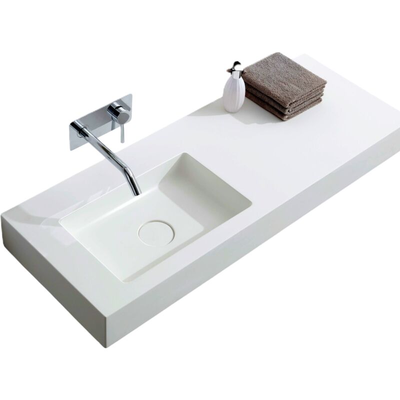 Bernstein - Vasque murale suspendue design en fonte minérale pour salle de bain avec bonde et trop plein - 121x45x12 cm - BA8012 - couleur et console