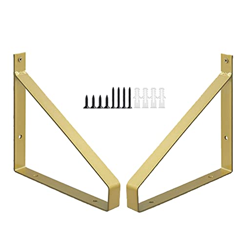 Pxzybd Consoles Et Supports D'étagères- 2 Équerre pour Étagere Murale- Équerre De Fixation en Métal- Support De Rayonnage Flottantes- Support d'angle, Or, avec Vis,Gold-10×8cm(3.9×3.1in)