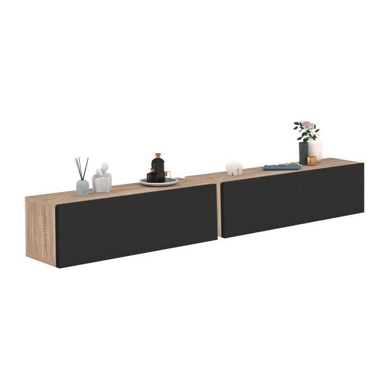 IDMARKET Lot de 2 consoles suspendues étagères murales ELYOS 1 porte bois et noir