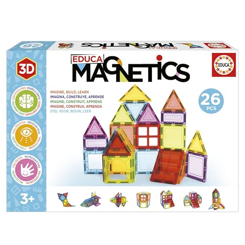 Educa Magnetics | Jeu éducatif de Construction 3D magnétique avec 26 pièces pour Enfants, construit des Figures géométriques en développant la créativité et l'imagination. À partir de 3 Ans (20022)
