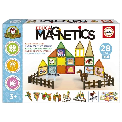 Educa - Magnetics Ecoferme | Jeu éducatif de Construction magnétique 3D avec 28 pièces pour Enfants. Comprend 2 Animaux et 8 Cartes. Construisez des Figures géométriques. A partir de 3 Ans (20269)