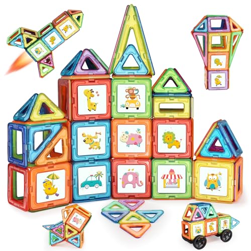 LIVEHITOP Construction Magnetique Enfant, 68 Pièces Bloc de Construction Magnétique Enfants Jeux Cadeaux pour 3 4 5 6 7 8 Ans Garçon Fille