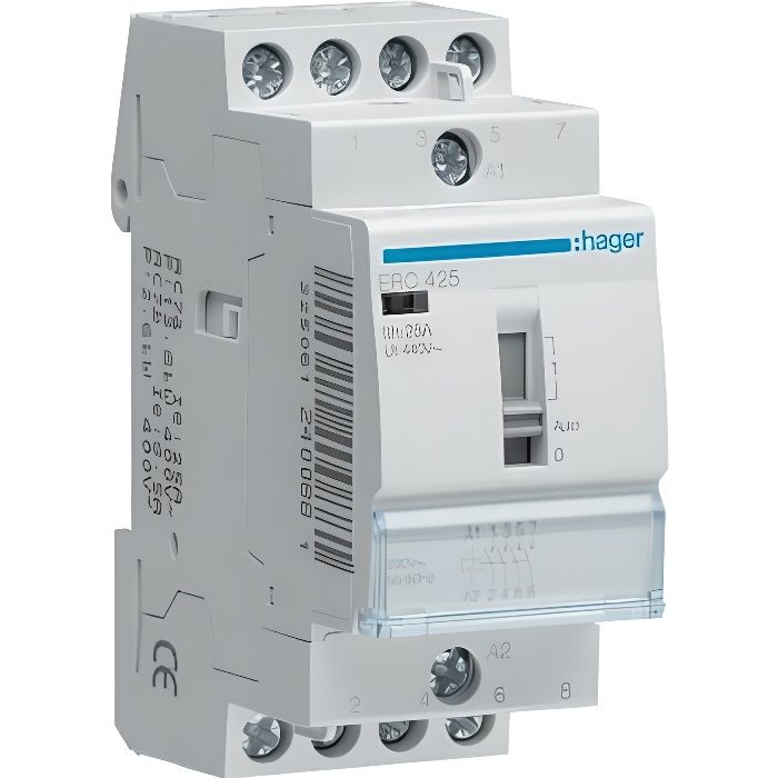 Hager - Contacteur chauffe-eau jour / nuit Silencieux - 25A - 4F - 230 v ETC425S