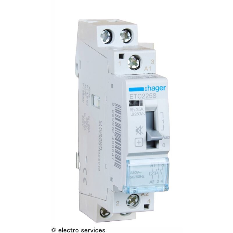 Hager ETC225S – Contacteur silencieux Jour/nuit 25 A 2na 230 V