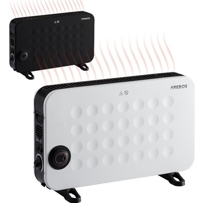 AREBOS Convecteur 2000 W chauffage électrique avec 3 réglages de chaleur chauffage électrique mobile à économie dénergie noir