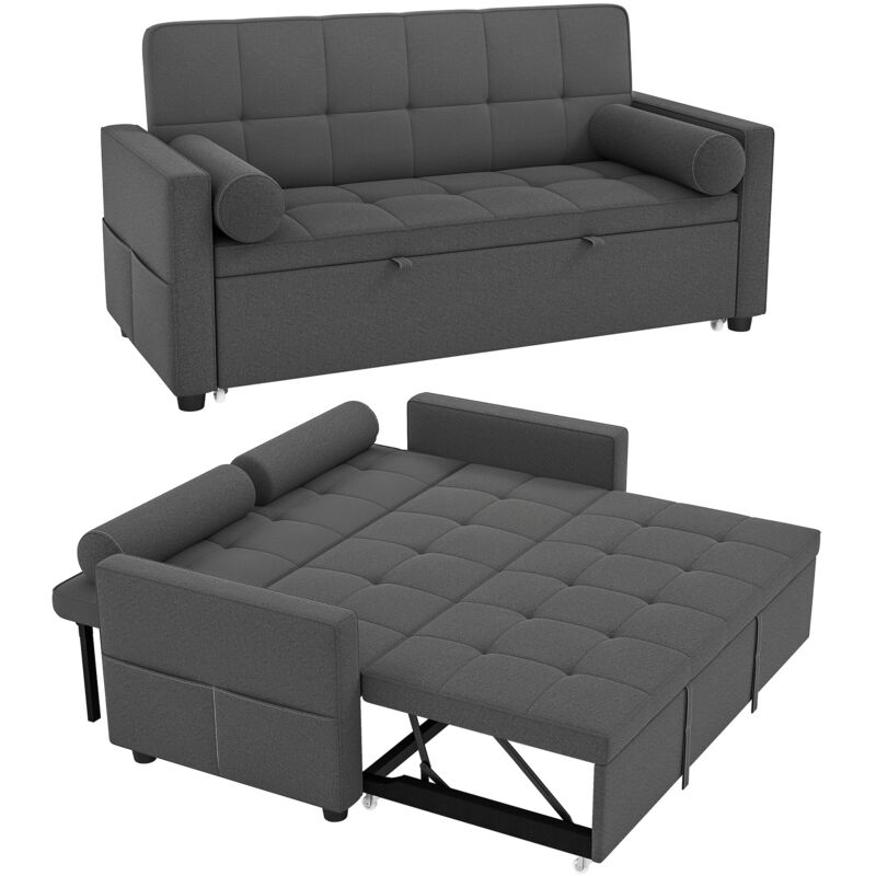 Canapé convertible 2 places - HOMCOM - 3 en 1 - lit gigogne double et dossier réglable - tissu aspect lin - 80,5x137,5x84cm - gris
