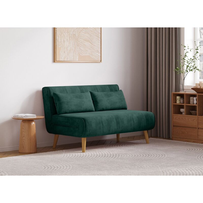 Vente Unique Canapé 2 places convertible en velours vert sapin URIBIA