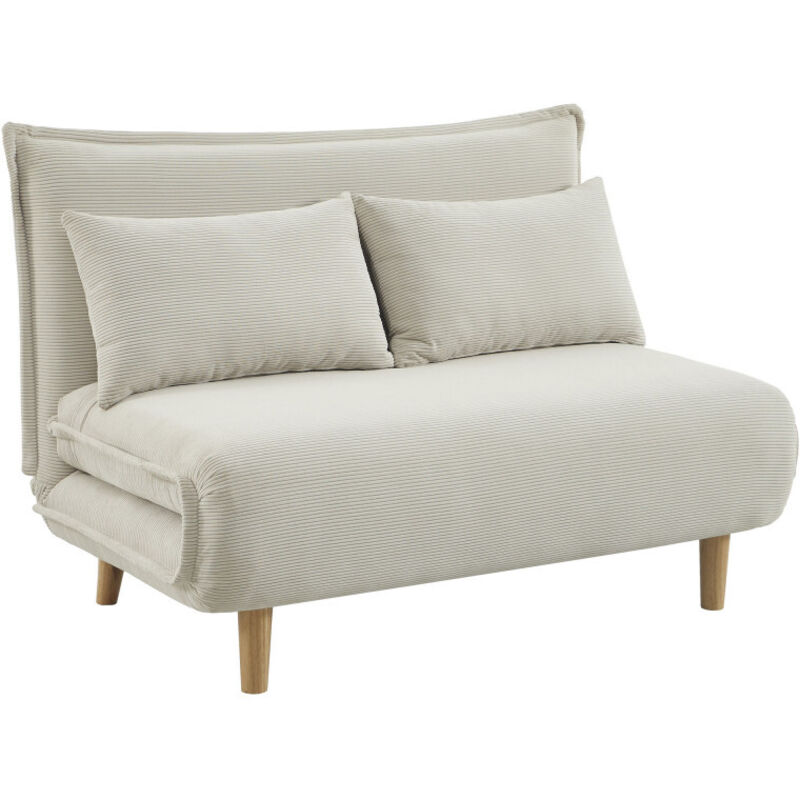 Canapé convertible 2 places en velours côtelé - Beige - Nella