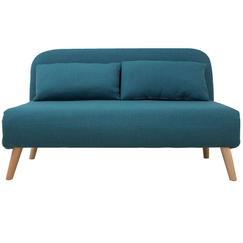 Miliboo – Canapé convertible 2 places en tissu bleu canard – Bois clair – 5 positions de dossier – Dimensions L132 x P84 x H78 cm