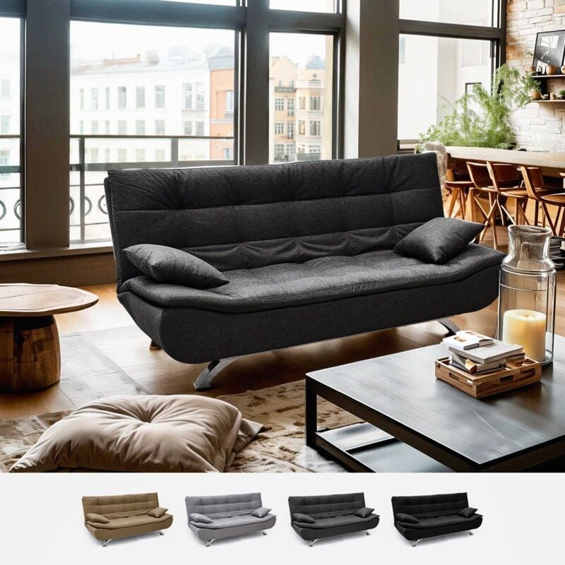 Canapé convertible 2 Places clic-clac en tissu design salon Giada Dark