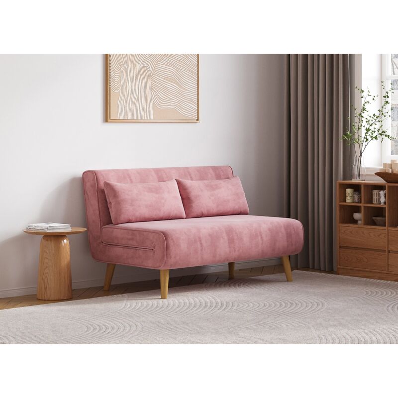 Deco In Paris - Banquette convertible 2 places en velours rose tonka