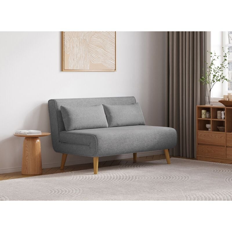 Homcom Canapé convertible 2 places design scandinave dossier inclinable 3 positions pieds bois tissu aspect lin gris
