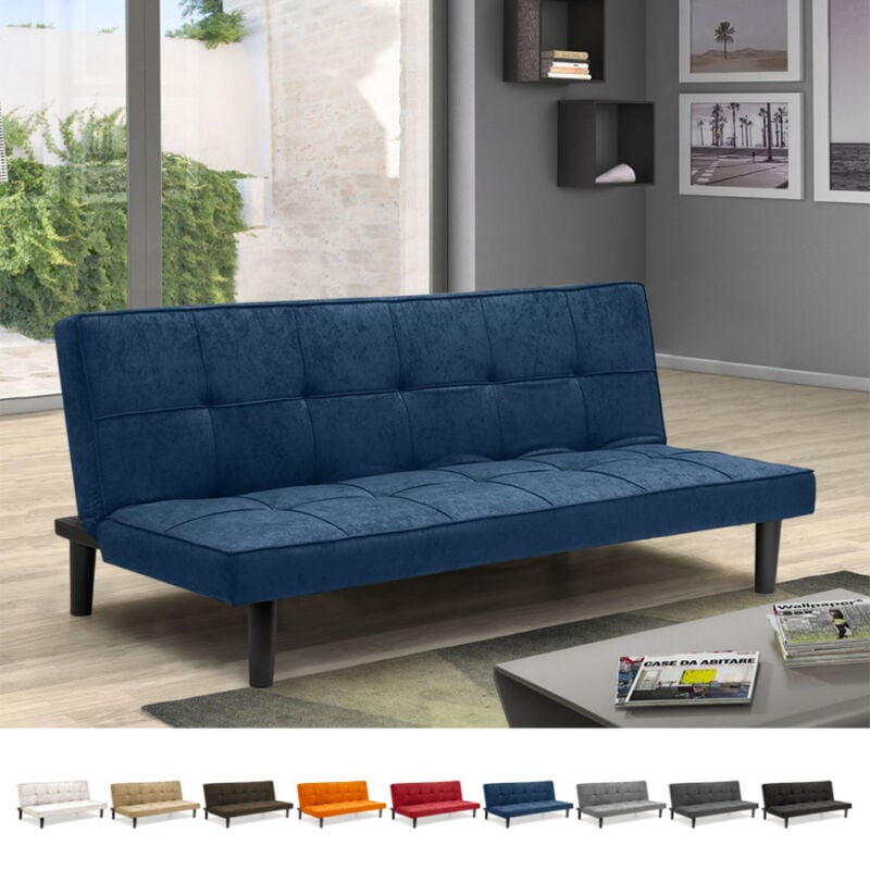 Canapé Convertible 2 Places en tissu clic-clac pour chambre et bureau Giada - Bleu