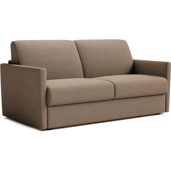 Vente Unique Canapé 4 places convertible express en tissu marron couchage lattes larges 160 cm Matelas 22 cm mémoire de forme VIZIR