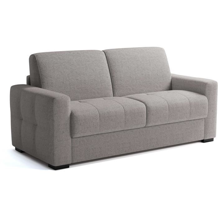 Vente Unique Canapé 3 places convertible express en tissu gris couchage lattes larges 140 cm Matelas 18 cm mémoire de forme VIZIR