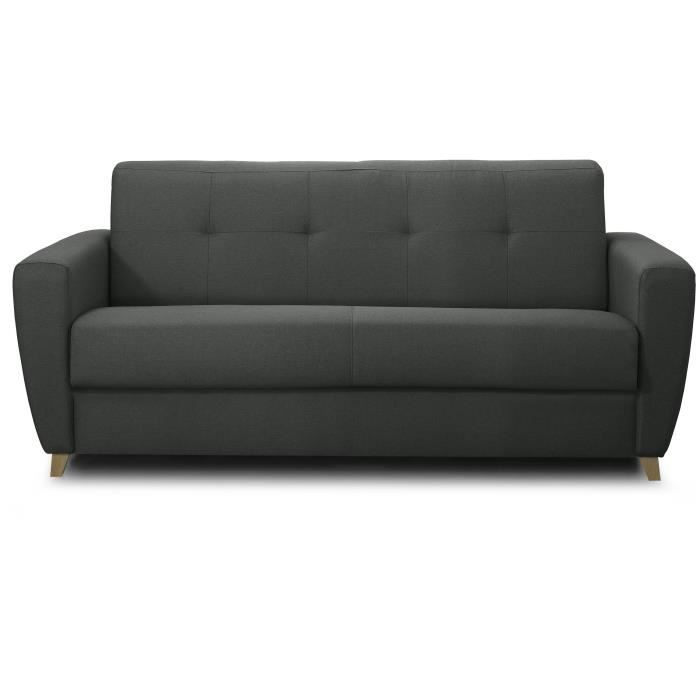 Canapé convertible express 3 places SKY - Tissu Anthracite - matelas 14cm - 192 x 100 x 88 cm