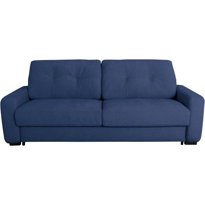 Canapé 3 places - Delta - Tissu Bleu - Convertible semi-express matelas 13cm - 190 x 92 x 90 cm