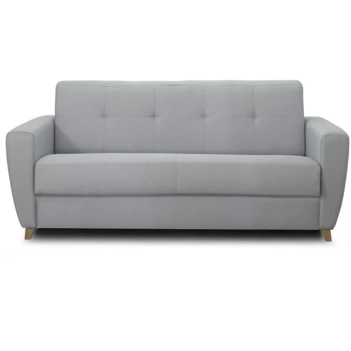 Canapé 3 places - Delta - Tissu Gris Clair - Convertible semi-express matelas 13cm - 190 x 92 x 90 cm