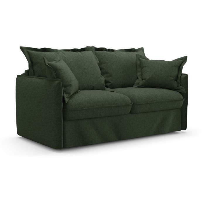 Canapé convertible express - 3 places - MYKONOS - Tissu Vert - 185 x 104 x 90 cm - MONDO