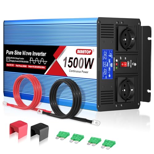 TAGEEBLU 1500W convertisseur 12v 220v Pur Sinus, transformateur 12v 220v avec écran LCD, 1 Prises UE