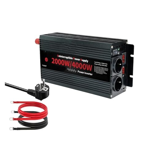 Convertisseur Onduleur Onde Sinusoïdale pour 12V DC 24V À 110V AC 220V Alimentation Électrique Ininterrompue UPS 2000W/4000W 15a/8a Courant Charge Onduleur(12V-220V EU 50Hz)