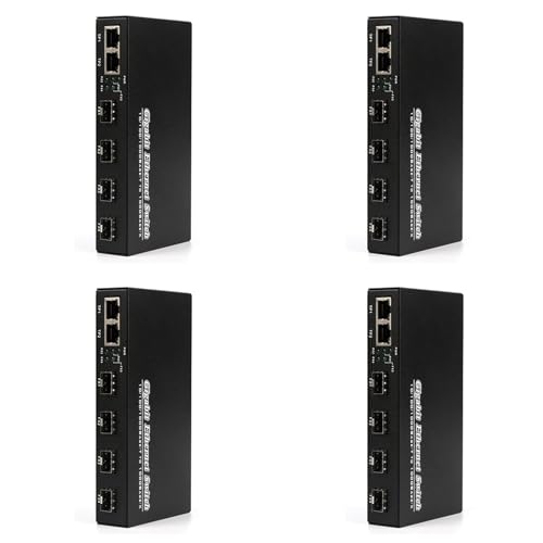 PUSOKEI Convertisseur de Média Fibre SFP, Port Réseau RJ45, Indicateurs LED, Plug and Play, 1 Port Optique 4 Ports électriques jusqu'à 120 Km, pour Commutateur Fibre Ethernet (Prise UE)